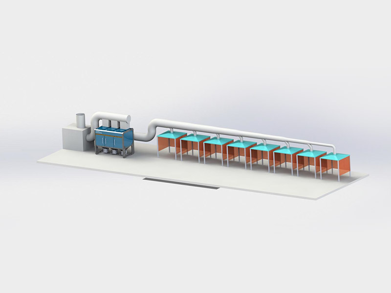 針對(duì)多個(gè)焊接工位相對(duì)集中,且焊接工件較大,大部分焊接過程中需要行車吊運(yùn),翻轉(zhuǎn)。可以根據(jù)實(shí)際工況設(shè)計(jì)采用單工位或集中焊煙凈化系統(tǒng),焊接工藝不同,焊煙的捕捉方式不同,可根據(jù)焊接現(xiàn)場(chǎng)的工藝要求設(shè)計(jì),一般采用的焊煙捕捉裝置為加長(zhǎng)型吸氣臂、旋轉(zhuǎn)型頂吸罩、伸縮罩、伸縮式工作房等。