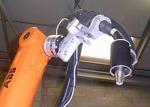 高負(fù)壓焊煙捕捉形式是吸風(fēng)口固定在機(jī)器人焊槍上,隨槍移動,對焊接時產(chǎn)生焊煙進(jìn)行捕捉收集的形式。吸風(fēng)口根據(jù)焊接工藝和工況針對性設(shè)計(jì)適合焊槍不同形式固定在焊槍槍頭,吸風(fēng)軟管可同電纜一起排布。吸風(fēng)口套筒的設(shè)計(jì)需要根據(jù)焊槍的結(jié)構(gòu)、工件焊接特點(diǎn)形狀,焊接角度等綜合考慮而設(shè)計(jì)。
